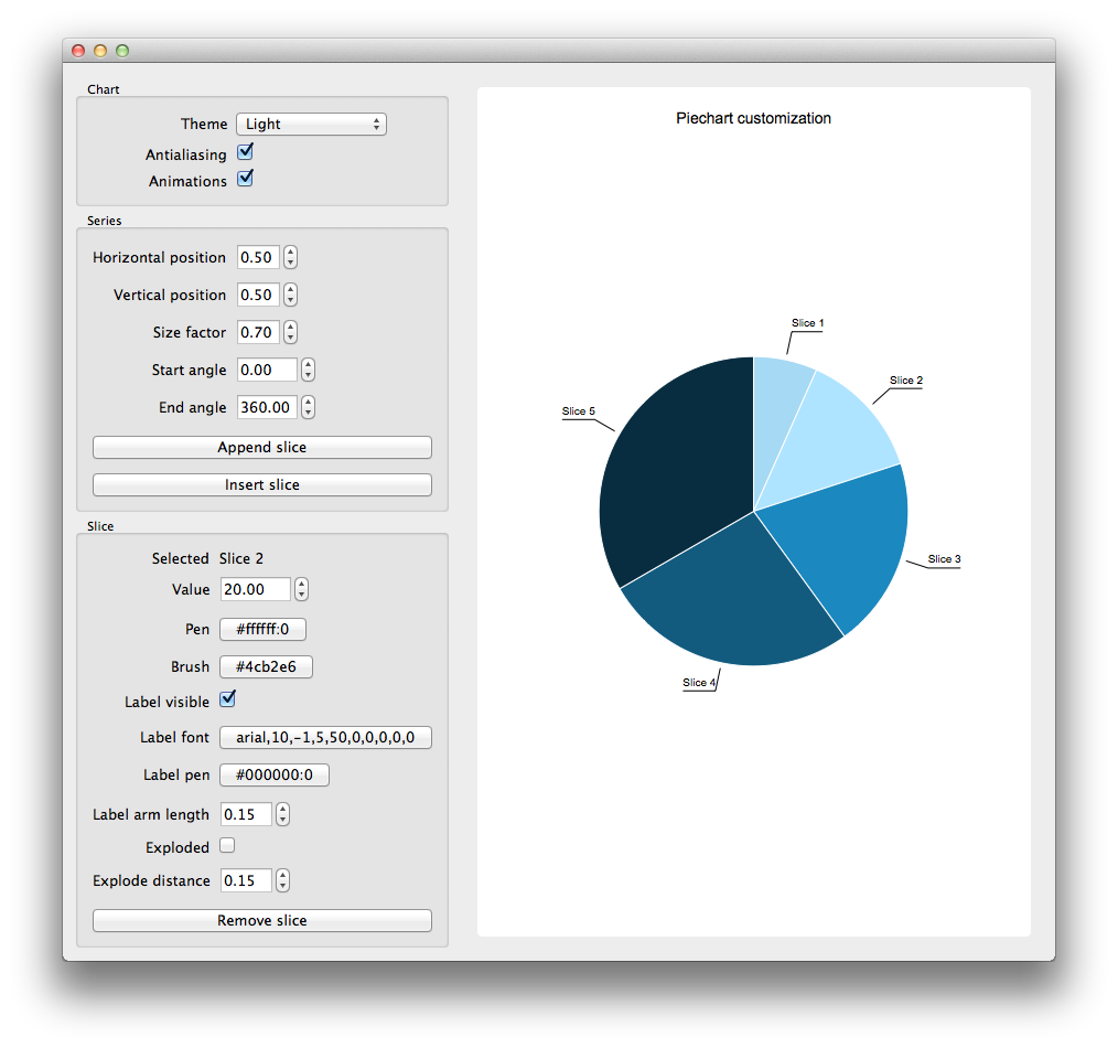 This example shows how the look and feel of a pie chart can be customized.