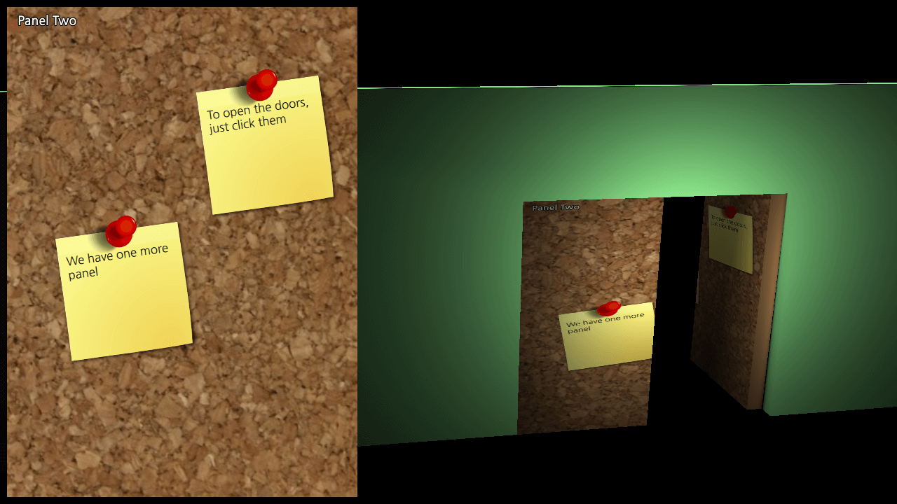 DynamicTexture demonstrates how to render 3D objects with 2D item. The 2D item used in this example is a fancy corkboard and it is textured to a simple double door.