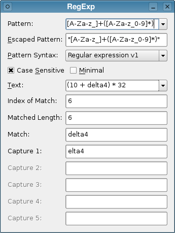 The Regular Expressions (RegExp) example shows how regular expressions in Qt are applied to text by providing an environment in which new regular expressions can be created and tested on custom text strings.