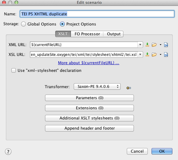 Edit that accordingly, and then choose the local profile in oXygen transformations.